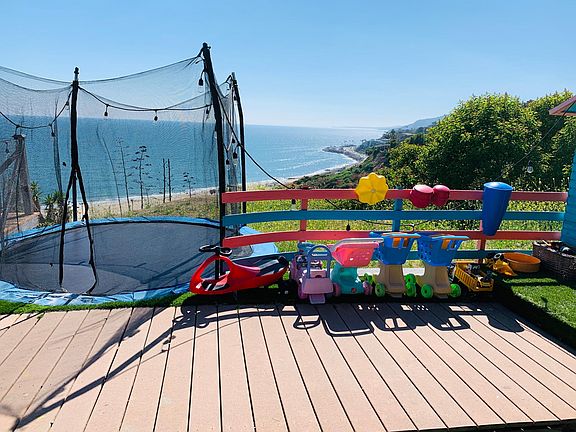 Perfect short-term home for family doing a remodel. Older family home with 270-degree views from Palos Verdes to Malibu. This open floor plan home has unobstructed sandy beach views. Short distance to the new Palisades village, beach, and Santa Monica. Fully furnished. This kid friendly house has a sunny playroom with ocean view, playhouse, and trampoline. Flexible lease term of 1-6 months preferred. Short term only - ideal for family doing remodel