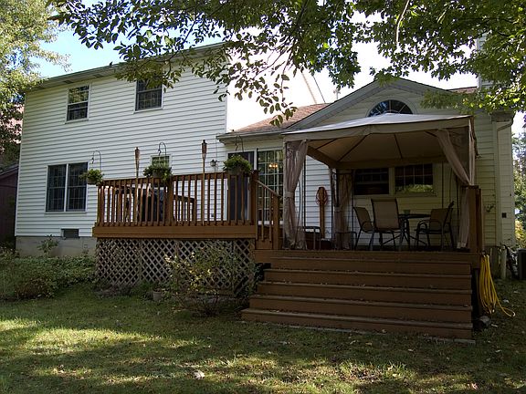 Beautiful setting overlooking pond and nature reserve. Sit on your deck and watch the ducks, blue herons, deer, fox and birds.Two story colonial. New kitchen cabinets and granite countertop 2012. New roof 2008, new driveway 2011. New carpet 2012. New dishwasher 2014. New Hot Water tank in 2015. Beautiful fireplace and bookshelf wall in family room. Large DR with beautiful Waverly wall paper and large window overlooking the pond. Hardwoods in DR. LR with bay window. Large MBR with vanity and dressing area.