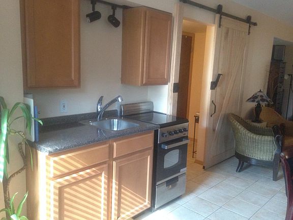 500 sq ft. Lower level studio apartment. 3 walls of windows providing lots of natural light. Separate entrance and private rear patio. Laundry/Large storage closet. Ceramic tile floors and European ceramic tile bath with luxury shower. Brand new stainless stove and refrigerator. 10 foot mirrored sliding door closet with built in storage. Organic garden in vibrant, spacious yard. Off street parking OR rent half of large 2 car garage for $50/month for car or storage. Located near Baxter and Manchester, 63011. Near Walgreens, Dierbergs, and a plethora of yummy restaurants. Available October 1, 2017. Call 636.399.4214