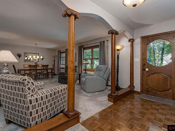 Overlooking the scenic backdrop of Rasmussen Woods, this spacious brick rambler in West Mankato offers the perfect combination of privacy, comfort, and location. The expansive one-level layout features generous room sizes and warm birch woodwork and cabinetry throughout. The main floor includes a formal living room and a welcoming family room complete with floor-to-ceiling built-ins, a wood-burning fireplace, and sliding doors leading to the backyard. The updated kitchen features quartz countertops, a tile backsplash, stainless steel appliances, and dining area with built-ins. All three main-level bedrooms offer double closets, and the primary suite includes a private bath and patio access. Additional main-level highlights include a mudroom and laundry off the garage, a convenient half bath, and a stunning screened porch—ideal for relaxing or entertaining. The lower level adds versatility with a large rec room which includes an egress window making it a potential 5th bedroom, an oversized bedroom, and a workshop. Enjoy peace of mind with numerous updates including a new roof, carpet, updated mechanicals, and much more. This is a rare opportunity to enjoy a private setting with wooded views, all while being close to trails, parks, and everything West Mankato has to offer.