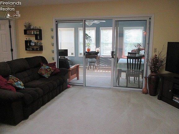 2 BR, 2BA Rivers Edge condo w/great room, cathedral ceilings and 4-season room. Each BR has walk-in closet. All kitchen appliances to stay. Pantry closet off dining room. Patio off 4-season room. Two car garage plus two car wide drive with a parking pad across the street. Pull down attic stairs. Association has pool and clubhouse for social functions.
