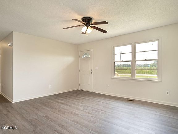 Welcome to your dream home nestled on almost half an acre with no city taxes! This beautifully renovated 3-bedroom, 1-bathroom ranch home offers the perfect blend of modern comfort and country charm. Located just 15 minutes from Historic Downtown New Bern, you'll enjoy the tranquility of rural living with easy access to city amenities. Entertain guests in the generously sized living room that flows seamlessly into the dining area. The kitchen boasts a pantry for extra storage, ensuring you'll never run out of space for your culinary needs. The updated bathroom features a convenient walk-in shower, providing ease and comfort. Also on the list of updates is a new HVAC unit to cool your summer days! Head outside to an expansive backyard, perfect for outdoor activities, gardening, or simply relaxing in your private oasis. Don't miss out on this incredible opportunity to own a slice of country paradise just minutes from the heart of New Bern. Schedule a showing today and make this charming ranch home yours!