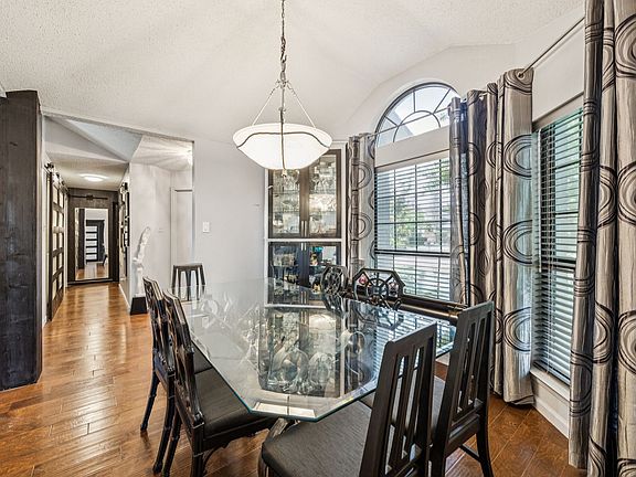 Stunning, artist owned, home with pool in Allen ISD! This 3 bedroom home offers so many striking features from stylish light fixtures to the gorgeously updated kitchen to the relaxing back patio overlooking the sparkling pool. Every choice has been thoughtfully made. Find easy care engineered hardwood throughout much of the home. The living room and dining room are open and create a dynamic flow that is perfect for hosting friends and family. The kitchen is separate, keeping meal prep under cover. The spacious living room boasts a vaulted ceiling adding to the open feeling of the room and views of the backyard and pool! The dining room has an impressive chandelier, built in, glass fronted china cabinet and easy access to the kitchen. The kitchen enjoys breathtaking updates including quartz countertops with tile backsplash, new cabinetry with brushed nickel fixtures, and charming light fixture. The primary bedroom boasts a large walk-in closet and en suite bath. The secondary bedrooms are split and a nice size. The secondary bath also has been updated. Step out back and be delighted by the oversized covered patio with reclaimed wood ceiling and refreshing pool. There is still plenty of grassy area for pets and children to play. The home enjoys energy efficiency with updated breaker box, radiant barrier and additional insulation in attic, new duct work, air turbines on roof and newer AC unit. Roof replaced in 2025. Pool pump replaced in 2024, sweeper in 2025. Convenient to schools, dining and shopping, including Watters Creek. Don't miss out on this amazing home.