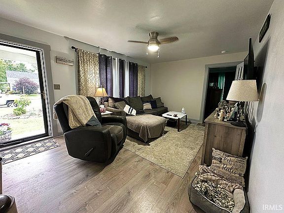Cute as a button describes this well-maintained 3 bedroom, 2 bath home in Huntingburg, IN. Step inside to the inviting living room with updated flooring and lighting. The Dining room is open to the kitchen with appliances included. The main level also features 2 bedrooms and a recently renovated bathroom. You will find the massive 3rd bedroom upstairs. The basement is a wonderful place to entertain with a bar area with plenty of cabinets and is open to the rec area. The second full bathroom is located in the basement . The backyard is spacious and features a cozy canopy area, 2 sheds, above ground pool, garden, and still lends plenty of space for outdoor games. The removable backyard fence is also included.