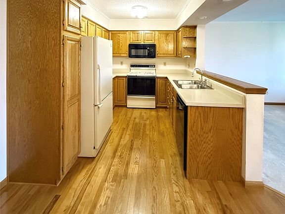 1-bed, 1-bath 750 sq. ft. second floor condo in the 55+ Maplewood Village community. Open kitchen, living room and dining area and front coat closet has a hardwood floor. Sliding glass door opens to a windowed 15 ft patio with an east view of beautiful sunrises. French doors open to a large bedroom. Kitchen has a pantry with pull-out shelves, lots of counter space and cabinets. Short hallway has a laundry closet with a full size washer and dryer and more storage. Bath has a walk-in shower and linen closet. $214 monthly association dues cover master insurance plan, trash collection, water, snow removal, lawn care, and exterior maintenance. Secure building entries. Each building has two community lounge areas. Included is an assigned indoor garage parking spot and storage closet. The lodge has a pool, whirlpool, exercise room, and a large meeting area with a kitchen is available to book at no charge for private parties and other activities. All residents can get a garden spot which is a hub of activity throughout the gardening season. No dogs. One cat is allowed. No smoking. Owner occupied only.