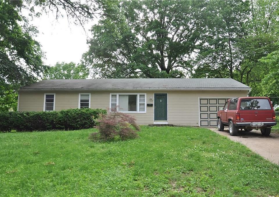 Cute fixer upper, straight ranch with 1,196 sq/ft. Main floor has hardwood floors, 3 great size bedrooms, dining room and large family room. Kitchen could use updating. House has a huge fenced backyard and backs to a church parking lot, walking distance to Blue Springs Park. This house has a ton of potential!