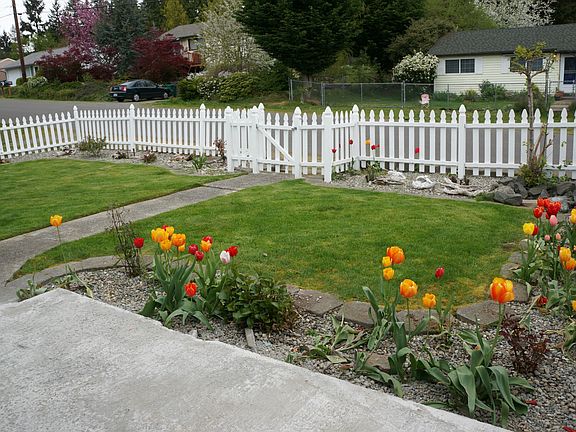 Very affordable Federal Way rambler! This 3 bedroom/1 bath home sits on a desirable corner lot (just shy of .25 acre) with RV parking & even an adorable white picket fence. Fresh paint inside and out, beautiful hardwood floors, newer roof, large 2-car garage with small shop area. Galley kitchen with eating space. This one is ready to go! Close to freeway, shopping and restaurants.