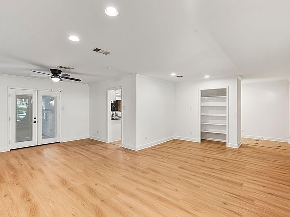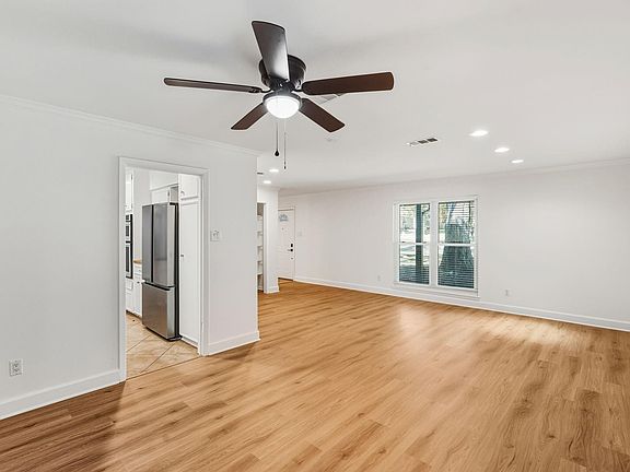 Charming brick one story in the heart of Conroe, just a short walk to Conroe High and tucked quietly in a mature-tree cul de sac. This 4-bedroom, 2-bath split plan features recently installed carpet, laminate flooring and fresh paint. The kitchen has granite countertops, double stainless sink, KitchenAid oven/microwave, JennAir downdraft cooktop, and Bosch dishwasher. Double paned windows. The living area includes a gas-ready fireplace and flows into a versatile sunroom ideal for a home office, gym, or relaxing retreat. Both baths offer granite, with a jacuzzi-style tub in the secondary. Two flexible living spaces provide great layout options, and the backyard includes a deck and an on-site built storage shed. Covered front porch. New roof in 2020. Move-in ready and minutes from I 45, 105 and 336.