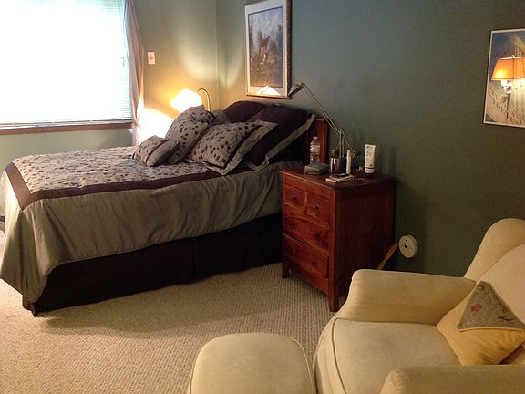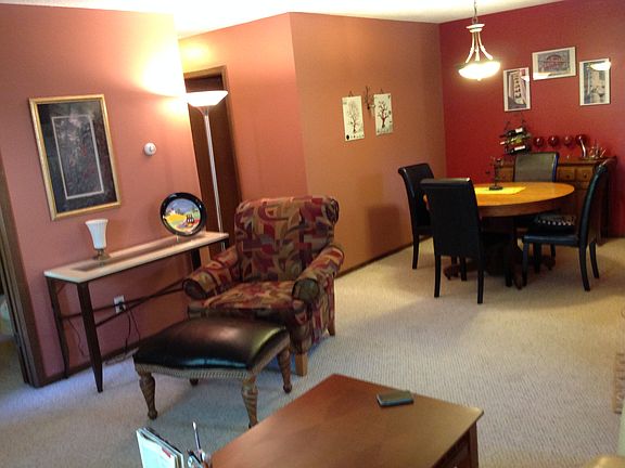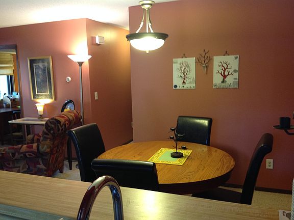 patio and front door provide natural light with patio on a beautiful courtyard with mature trees. This is a safe neighborhood and neighbors ready to help if needed. The oversized den has wall to wall bookshelf, desk, and closet. The bedroom has walk in closet with new queen sized mattress on bed and plenty of space in dresser for clothing. Washer and dryer is in the unit and this condo is fully and attractively furnished. The garage is included also and is only four steps from the front door. The property is very close to 394, 169, 55 and very easy to get downtown etc.