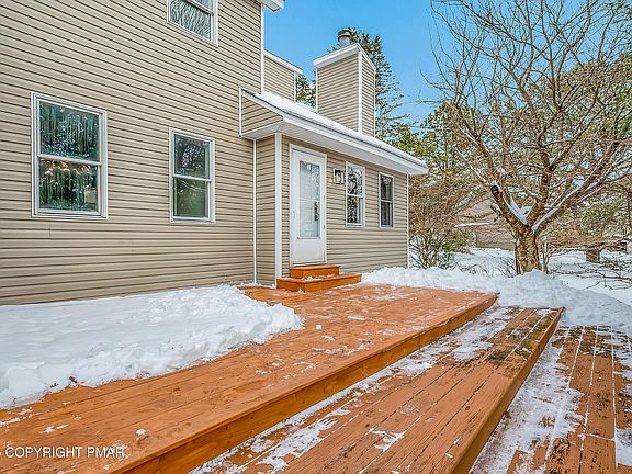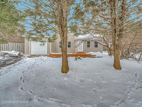 Welcome to this beautifully renovated 3-bedroom, 2-bathroom home, perfectly situated near top Pocono attractions! This bright and spacious retreat boasts a brand-new kitchen with elegant granite countertops, perfect for cooking and entertaining. Cozy up by the charming fireplace on chilly evenings, or enjoy the home's inviting atmosphere with wild nature around. Whether you're looking for a peaceful getaway or a home near major roads and attractions, this property offers the perfect blend of comfort, style, and convenience. As big plus you'll have new roof and skylights/siding , ,perfect large partially fenced backyard backing up State Land , one car garage ,storage shed ,low property tax and much more to offer