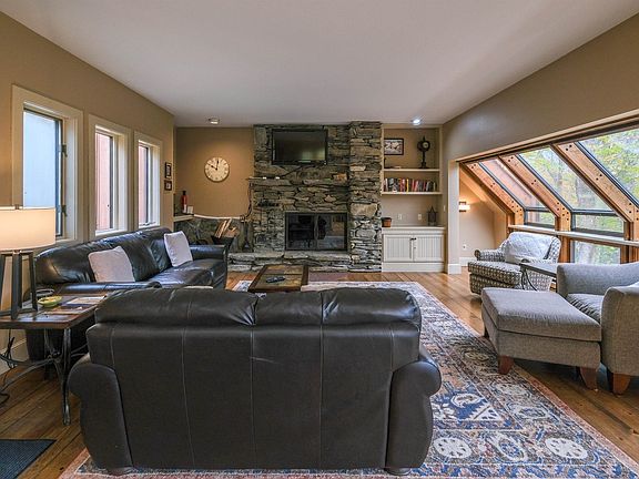 Stone wood-burning fireplaceCovered screened-in porchExpansive rear deckBeautiful mountains of vermontSpacious front deckOpen floor plan