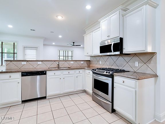 undefined Down the hallway you find the Primary Suite with an en-suite bath. It has a separate shower and a whirlpool tub, dual vanities, and a large walk-in closet with built ins. Upstairs there are 3 full bedrooms and a full bathroom. The downstairs front right dining room can easily be converted into a 5th bedroom or office. Another half bathroom is located downstairs right off the living room.