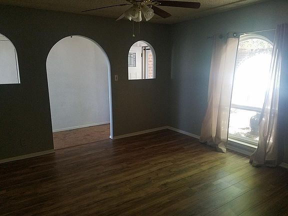 4 bedroom 2 bath home with two living areas and formal dining room. Kitchen has lots of storage and overlooks back living room with a fireplace. Tile and laminate-wood floors throughout. Built-in cabinets and shelves in master bedroom. 2 car garage, refrigerated air, water softener. Located in established neighborhood. Home is listed in an "as is" condition. Tenant pays all utilities. Pets upon approval - there is a one time non-refundable pet rent of $125 per pet.