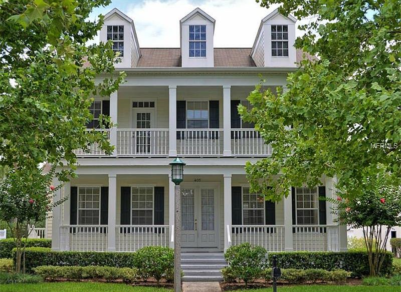 Located just a few blocks from Downtown Celebration. This beautiful Coastal Home has 2 expansive Double Front Porches. This 5 Bedroom, 4 Bath home is over 3000 Square Feet of Living Space. Included is the Efficiency Apartment over the detached 2 Car Garage. Home is situated on a XL lot with plenty of room to design the pool and lanai of your dreams. Double front doors lead to your Living Room with Volume Ceilings and Expansive windows to make the space light and bright. Through the double doors to the left is a large bedroom suite or office/den/library with a full bath. Floors are 18" tiles throughout first floor. Formal Dining room area has ornate metal chandelier. Family Room is open to the Kitchen with a wood burning fireplace and built-in shelves. Kitchen has tile counter tops & back splash carried over to the Center Island plus Eat-in area. Large Laundry Room off the Kitchen also serves as a utility/mud room with doors leading to the Backyard. Family room French Doors lead to Large Screened Porch. Upstairs features a Master Suite with Garden Bath with separate shower, XL Walk-in Closet plus 2 additional bedrooms and a full bath. Front Bedroom opens to Covered Porch with view of Sycamore trees. Efficiency Garage Apartment has a Queen Size Murphy Bed plus wall cabinets and Full size Kitchen & Bath.