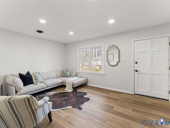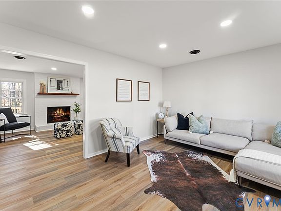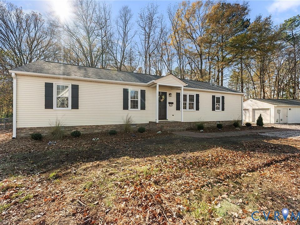 Welcome to 405 Thompson St in the heart of Ashland, an impeccably renovated, move-in-ready home that blends modern design with classic comfort. Set on a private, wooded lot, this single-level property offers exceptional curb appeal with fresh landscaping. A long gravel driveway leads to a rare detached two-car garage, providing ample parking, storage, and workspace. Inside, the home opens to a bright and spacious floor plan with wide-plank luxury vinyl flooring, recessed lighting, and abundant natural light. The living room features a whitewashed brick fireplace with a wood mantel, adding warmth and character while flowing seamlessly into the dining area and completely updated kitchen. This designer kitchen includes white shaker cabinetry, quartz counters, stainless steel appliances, a bold blue island with seating, modern hardware, and a large window overlooking the backyard, making it the perfect space for cooking and entertaining. The primary suite is a peaceful retreat with soft natural light, warm flooring, and French doors that open to the private backyard. The ensuite bathroom offers a clean, modern look with a white vanity, matte black fixtures, updated lighting, and a bright shower with built-in shelving. Additional bedrooms are spacious and comfortable, ideal for guests or a home office. Outdoors, enjoy tranquil wooded views and plenty of room for gatherings, gardening, or future enhancements. Located just minutes from downtown Ashland, Randolph-Macon College, charming shops, dining, and major highways, this home delivers the ideal combination of privacy and convenience. Every detail has been thoughtfully updated, offering a fresh, stylish, and truly move-in-ready home in one of the area’s most desirable locations.