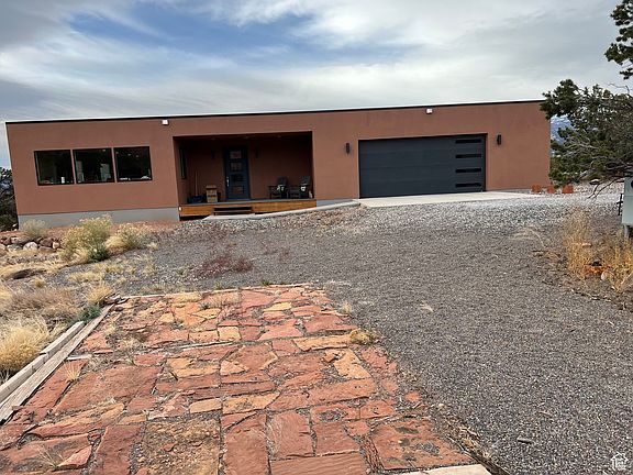 RARE FIND in Torrey where few homes ever go up for sal! Welcome to this beautiful, two bedrooms, two bath home. 1650 sq ft sitting on 11.92 acres (1.92 for the home/lot and 10 acres of the arroyo below where sand creek runs). Built in 2018 and overlooking unbelievable views from every picture window throughout the house. Striking red rock vistas out the kitchen windows, views to Capitol Reef National Park out the dining and living widows and a grand view of the Boulder Mountains out the living room sliding glass doors down way into the arroyo below where all sorts of wildlife pass by. The kitchen is a chef's kitchen with a large 5'1' x 9'9" counter with a gas stove and an electric oven. Large refrigerator and freezer. Long counter with sink and dishwasher with large windows with no cabinets obstructing views. Open concept living with kitchen, dining room and living room with a cozy gas fireplace. Primary suite has a walk in closet, en suite bath with walk in shower, and the guest bath has a luxurious soaking tub. Large garage for two cars with room enough for a small shop or room for your side x side and shelving for storage. Large, covered patios in the front and back of the house, looking over Sand Creek which flows through the bottom of the property-but not close enough to need flood insurance. Also, new 10" x 12" Tuff Shed for extra storage.