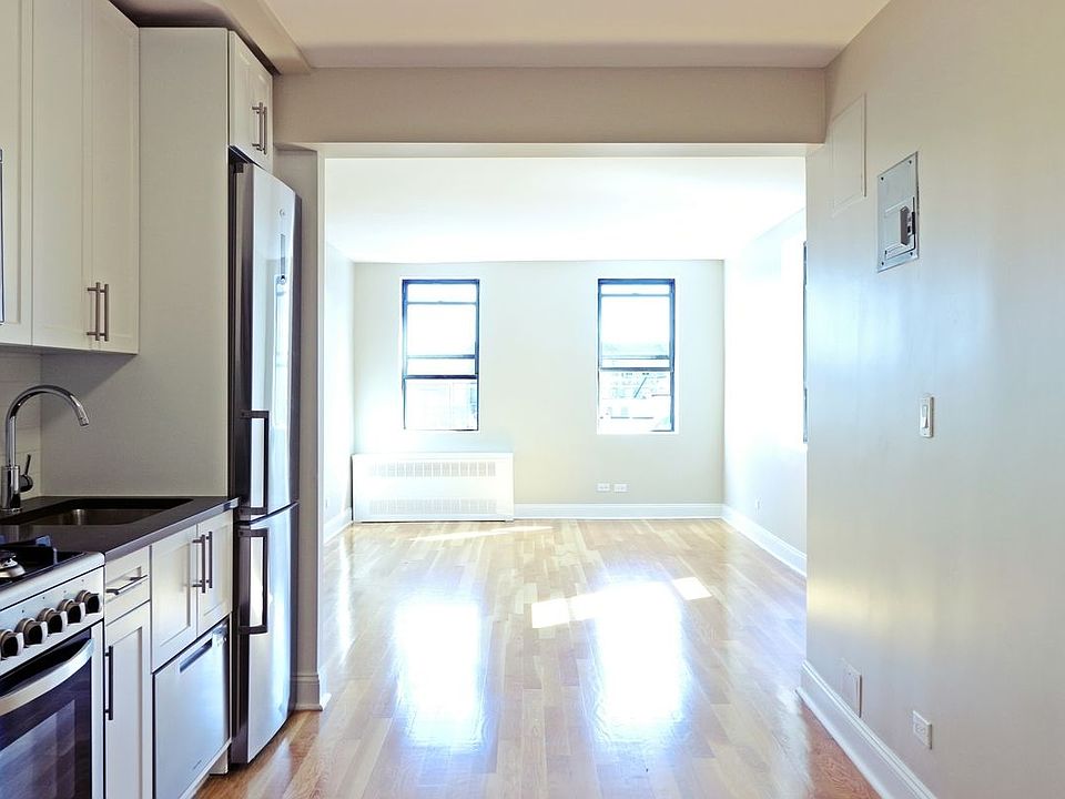 Modern, south and west facing, top floor corner studio apartment, overlooking the historic Hamilton Heights, in an elevator building for rent. Please note for inquiry: please email with some info about yourself, why you are looking to move, time frame to rent, number of total tenants, income and credit status. This modern, bright and spacious studio was gut renovated not too long ago and has new oak hardwood floors along with a brand kitchen featuring stainless steel appliances, quartz counter tops and a glass tiled back-splash. This apartment provides substantial closet space, a dressing area and ample sunlight from three windows (two facing south, one facing west). The pristine bathroom with over-sized floor-to ceiling subway tiles, 12x24" porcelain accent wall, stylized fixtures and standing shower. Community laundry room is available in the building. The building is located on 149th Street and Convent Avenue in the heart of the Sugar Hill/Hamilton Heights Historic District, surrounded by historical landmark buildings. The area consists of serene blocks of beautiful, row houses. Being on the top floor, the studio overlooks onto the majestic historical landmark buildings to the south. The nearest subway entrance is two blocks away on 147 st and St. Nicholas Ave (A, B, C, D) with ~10 minute ride to 59th St Columbus Circle on the express lines. Terms and Conditions: - Owner listed. No broker fee. - Rent+1 months security deposit - Water, gas, hot water & heat included in rent. Tenant covers own electricity with direct utility accounts. Building is Fios ready. - No smoking - Sorry no pets please - 1 year lease minimum; 2 year preferred - Employment, income, credit and background checks, and references will be required for the condo application process. - Must show annual income no less than 40x rent and good credit history with no payment delinquency Area Info: - Steps to the City College campus. - Easy access to Columbia University to the south - Yeshiva University to the north. - Transportation: A B C D subways two blocks to the south - 10 minutes to Columbus Circle & 13 minutes to Times Square by express subways - #1 subway, #101 Lexington Avenue bus line, #3 Fifth Avenue bus line, #19 Bronx bus line are all easily accessible - Super Foodtown, and NY Sports club within the area Area Amenities within Walking Distance: - Jackie Robinson Park 2 blocks east with seasonal pool, recreation center, gym, ball courts, band shell with free Summer concerts - River Bank State Park and Riverside Park a few blocks west towards Hudson: picnic grounds, indoor Olympic size swimming pool, ball courts, track, ice skating, gym, summer concerts/dances, seasonal carousel. - St. Nicholas Park a few blocks south: great lawn, picnic areas, ball courts, free outdoor movies in Summer, Alexander Hamilton's country home, the Grange, sits in the park's north end. Dining options: - Japanese sushi at Geisha - Classic American fare at The Grange - Sports nights at Grill on the Hill - Craft beers at Hogs Head Tavern - Indy coffee houses & Starbucks