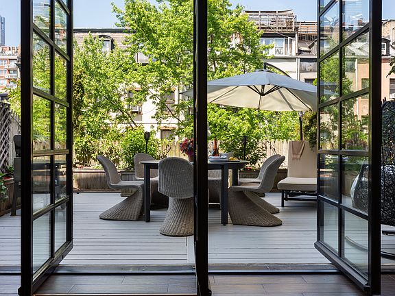West Chelsea Loft with Private Terrace and Fireplace- The epitome of urban elegance, this breathtaking, completely renovated, furnished loft features its very own private outdoor terrace and working wood burning fireplace. This luxurious residence, complete with all original artwork, Italian designer furnishings and central air conditioning, blends contemporary sophistication with rustic charm. An idyllic retreat, this home is located on one of the top ten rated townhouse blocks in Manhattan and is across the street from The High Line Hotel and General Theological Seminary, one of the oldest seminaries in North America. The wide plank hardwood floors and exposed brick walls complement the spacious open floor plan with soaring 10.5 foot high ceilings. The striking wall of floor-to-ceiling black iron French doors bathe the space in natural light, highlighting the impeccable finishes and thoughtful design. The gourmet kitchen is a chef's dream with state-of-the-art appliances, Italian marble backsplash and custom wooden cabinetry with gold hardware. The sleek stone countertop is ideal for entertaining and seamlessly integrates with the living and dining areas. The sleeping area includes a custom Italian queen-size Murphy bed that conveniently turns into a revolving bookshelf wall for an instant home office flexible space option. The floor-to-ceiling closets provide ample storage. The modern white spa bathroom is equipped with premium fixtures and geometric floor-to-ceiling tiles. The piece de resistance of this loft, however, is the private terrace, a serene oasis that evokes the enchanting ambiance of a Provencal garden. Lush greenery, fragrant lavender, and blooming seasonal flowers create a picturesque backdrop for al fresco dining, morning coffee, or simply unwinding under the stars with a magnificent view of the Manhattan skyline. The carefully curated outdoor space features a solid wooden deck, Weber gas barbecue grill, custom outdoor lounge and dining furniture, and ambient lighting, ensuring a tranquil escape from the hustle and bustle of city life. In addition, the apartment has access to a private reserved gated parking space (for a monthly fee and pending space availability). Located in the heart of West Chelsea's Historic District in an elegant boutique brownstone building, this exceptional loft provides unparalleled access to world-class art galleries, boutiques, and top-tier dining. With the High Line and Hudson River Park a block away, and Whitney Museum, Little Island, Urban beach, Chelsea Piers, Chelsea Market and Google HQ nearby, enjoy the perfect balance of urban convenience and natural beauty. Available furnished, short and long-term.