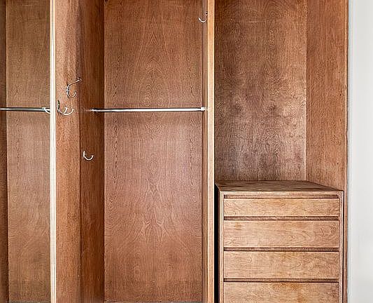 Walking through the door of the original 1930's steel framed door into this beautifully maintained home featuring high beamed ceilings, hardwood floors, and a flexible layout that easily separates living, dining, and sleeping areas will make you feel right at home. The south-facing casement windows are flooded with natural light while framing open-sky views across the neighborhood. The sleeping alcove is smartly tucked away behind elegant drapery for privacy and comfort.