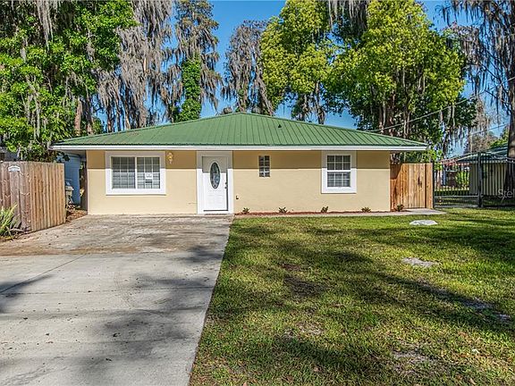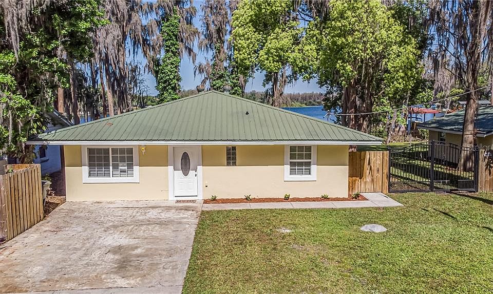 MILLION DOLLAR VIEWS! Charming UPDATED 3 bedroom, 2 bathroom + a separate 500SF workshop/studio/future in-law suite with nearly 100FT of WATERFRONT! So much opportunity for those looking to live that dream waterfront lifestyle on beautiful Lake Chapman! A metal roof gives the home Key West vibes and you will fall in love with the gorgeous rustic WOOD BEAM ceilings that flow throughout the main living areas. Enjoy amazing LAKE VIEWS from the kitchen which is equipped with GRANITE countertops, STAINLESS STEEL appliances, a breakfast bar, and plenty of cabinet storage. A continuous flow of oversized diagonally laid tile flows throughout with wood floors in one of the bedrooms. Both baths have been beautifully upgraded with gorgeous materials and accents. The separate free-standing workshop has been updated on the exterior with newer windows and French doors looking out to the lake. Water/electric is available and the interior is unfinished, so you can CUSTOMIZE it to fit your needs! This OVERSIZED WATERFRONT LOT is perfectly located just minutes to I-275 so you can quickly commute anywhere in Hillsborough, Pasco or Pinellas! Don't miss this WATERFRONT PARADISE!