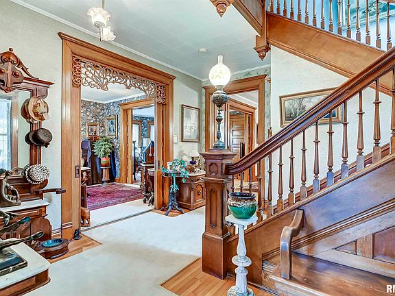 Beautiful family residence or perfect opportunity for a potential Bed & Breakfast property. The current owner has lovingly maintained & updated the home over the past 30 years. Gorgeous woodwork, fretwork & hardwood floors throughout the main level. Solid oak pocket doors featured on main floor. Spacious rooms for living, dining, office & kitchen. Kitchen recently updated w/ cabinetry, granite counters & flooring. Huge walk-in pantry. Newer appliances.1/2 bath on main floor. The front staircase features the style & woodwork you would expect in this type of home. Upstairs are 5 bedrooms & 2 full baths. There is a walk-through closet into the main upstairs bathroom from the primary bedroom. There's also a walk-up attic for tons of storage space. Zoned heating/cooling. Recent painting throughout the home. Laundry is on the second floor for your convenience. If you admire & appreciate history & older homes this is a definite must see! Small town living at its finest! Just 25 minutes West of Springfield. Enclosed front porch. Covered side door entry. Detached Oversized garage w/ walkup storage & work room. Beautiful landscaping.