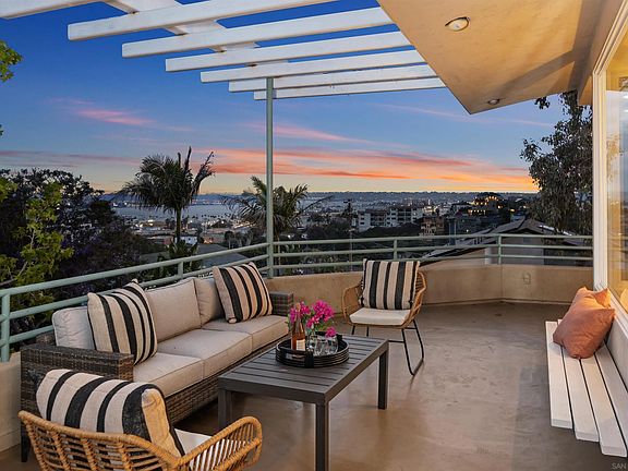 First time on the market this stunning contemporary was custom-designed by architect Jack Wagenaar as his personal residence. Located near Maple Canyon Trail, this 2,782 sqft home features 4 bedrooms (plus optional 5th), 3.5 baths, and spans three levels. Expansive wrap-around balconies on the top two floors offer ideal spaces to relax or entertain while taking in unobstructed views of San Diego Bay, Coronado, and Point Loma. Filled with natural light and timeless design elements, this is a rare opportunity... to own a one-of-a-kind architectural gem in the heart of San Diego.