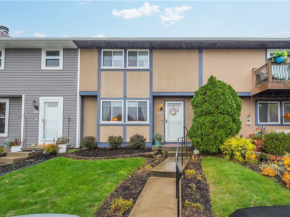This beautifully updated townhouse offers comfort, style, and a prime location near major roads, shopping, and dining. Enjoy brand-new LVP flooring and fresh paint throughout. The spacious living room features built-in shelves and a convenient half bath with a newer vanity. The kitchen is a standout with painted cabinets, new hardware, ceramic backsplash, updated faucet, newer gas range, and dishwasher. Updated lighting adds a modern touch throughout the home. An open staircase connects all levels, including three generously sized bedrooms with ample storage. The hall bath features a ceramic tile floor, quartz vanity top, and a decorative vanity with a tub/shower unit. The finished lower level provides additional living space, abundant storage, and walk-out access to a new composite deck and level backyard—perfect for relaxing or entertaining. A turnkey home that blends function and style in a highly convenient setting!
