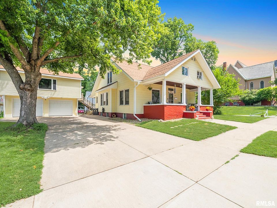 One-of-a-Kind, Income-Generating or Dual-Living Opportunity in the Heart of Pekin! This 5 bedroom, 2-bath home is bursting with character and space, offering everything your family needs. You’ll be welcomed by a large, inviting front porch. Stunning gleaming wood floors, original woodwork, built-in features, and generous living and dining areas. The freshly remodeled Chef's kitchen is a true showstopper, featuring granite countertops, a large island, high-end stainless steel appliances, and abundant storage space. This property includes a bonus private 1-bed, 1-bath apartment with a full kitchen and living area located above a spacious 2-car detached garage. With nearly 700 square feet of additional living space and its own parking spot, this unit is perfect for guests, extended family, or generating rental income. Outside, enjoy a low-maintenance yard with two peaceful outdoor spaces. Relax on the charming porch out front and enjoy the cozy back patio. Back of the house consists of a private drive for the apartment. Located on a historic street, you’re just minutes from Schools, parks, shopping, and dining. This home is move-in ready and full of potential. What an incredible opportunity for passive income or multi-generational living. Schedule your showing today!