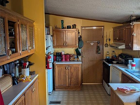 This Double lot is perched at the top of the subdivision with nice views, a fenced yard, mature trees, sheds, deck and handicap ramp. Open floor plan also boasts a fireplace in the dining room! Most finishes are original and home could use updating. - So bring your Dream of home ownership and your Vision for remodeling and make this YOURS!