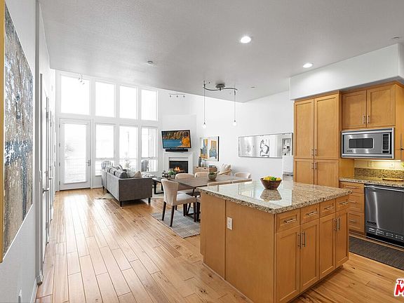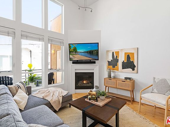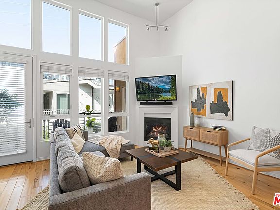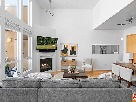 Contemporary Coastal Condo in the Marina Arts District! Located in the extremely coveted Indigo building and situated only minutes from the sparkling Pacific, this 2BR/2BA, 1,390 sqft top-floor residence includes a separate den or 3rd bedroom and abundantly impresses with an organically flowing floorplan, soaring ceilings, a crisp color scheme, beautiful hardwood floors, and a glamorous living room with a cozy gas fireplace and access to a private patio with peek-a-boo cityscape views and scintillating floor-to-ceiling windows. Thoughtfully fashioned for memorable entertaining, the open concept kitchen features granite countertops, stainless-steel Viking appliances, gas range, gorgeous wood cabinetry, French door refrigerator, built-in microwave, dishwasher and an island with storage. Conveying tranquil vibes, the primary bedroom stuns with high ceilings, multiple symmetrical windows, tons of closet space, and an attached en suite with a soaking tub, a separate glass enclosed shower, a water closet, and a dual sink vanity. One extra bedroom provides comfort and style for overnight visitors or children, while the full guest bathroom elevates self-care routines. Other features: 2 separate parking spaces, large in-unit laundry room, tons of closet space, community spa, sauna, gym, firepit, and BBQ grills, close to entertainment, dining, shopping and more!