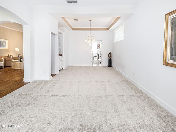 Beautifully maintained 3BR/2.5BA, 2,072 SF home in the desirable Villages of San Jose, a gated Mandarin community offering 24-hour security, lakeside pool, tennis & pickleball courts, playground, and walking paths. This original-owner home features a new roof (2024), AC (2023), WH (2024), new carpet (2025) extended garage, and fenced backyard with screened porch, paver patio, and storm boards for all windows. Interior highlights include formal living & dining with tray ceiling, family room with fireplace & built-ins, new carpet, and alarm system. The kitchen offers white cabinetry, Kitchenaid stainless refrigerator, breakfast nook & bar, and water purifier. The spacious primary suite includes dual closets, patio access, and en suite bath with dual sinks, garden tub & tile shower. HOA $343/mo includes lawn care, fertilization, pest treatment, garbage pickup & irrigation water. Close to JCA, San Jose Country Club, Epping Forest, Bolles School & San Marco dining and shoppes.