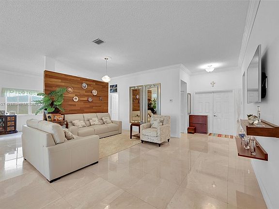 Beautifully renovated(2013) immaculate home in the prestigious gated community of The Ridges. Enjoy this spacious 3/2.5 one-story home on private berm with lush landscaping and a bonus Florida Room for office(with impact window). Rarely available modified "Arlington" with open floor plan. High impact front door. Marble floor throughout all living areas, and granite countertops. Relax in the 30x10 tiled & screened patio with room for pool. The Ridges is rated the safest area in Weston and best schools. It has a renovated clubhouse with playground, pool, pickleball, basketball, tennis court, and valley ball. Low HOA fees. A+ schools. Near Sawgrass Mills Mall, Cleveland Clinic, and more. DON'T MISS OUT!! Asking price includes a brand new tiled roof to be installed.