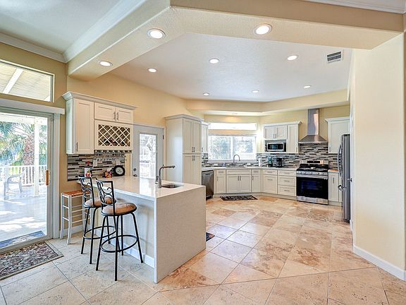 OPEN FLOOR PLAN WITH SIDEYARD PARKING AND WONDERFUL REAR DECK WITH OVERHANG; U-DOCK WITH NEW ALUMINUM RAMP, 4 BEDS AND 2 FULL BATHS, UPPDATED LARGE OPEN KITCHEN WITH EVERY AMENITY INCLUDING BAR WITH WINE-REFRIGERATOR WHICH OVERLOOKS GRAND ROOM WITH FIREPLACE; ALL TILE FLOORING; FULLY FURNISHED AND AVAILABLE LONG AND SHORT TERM..