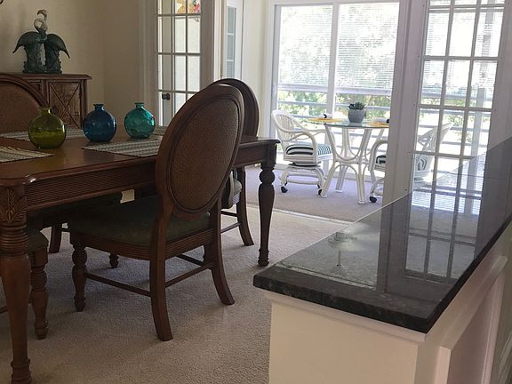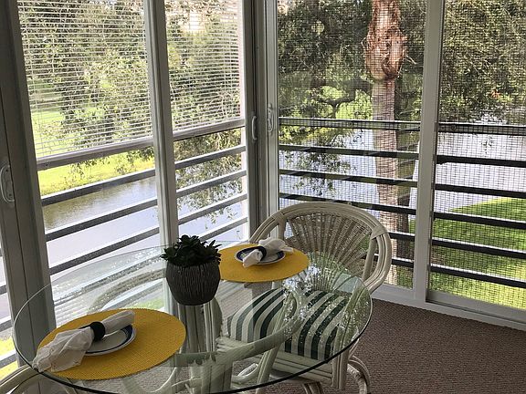Rarely available "furnished" Pinebrook villa with beautiful golf course and pond views. The large, light and bright eat in kitchen offers SS appliances, plenty of cupboards and enough counter space to please any chef. The open floor plan with high ceilings has just been updated with new flooring and seller says they paid extra for sound barrier to be installed under flooring. Master suite and guest bedroom are completely separate for added privacy. Views of the golf course and ponds can be seen from the living room, dining room and master bedroom. French doors from the dining room lead you to your enclosed lanai oasis where you will also find the golf course and water views. This is the perfect area to read a good book, enjoy your morning coffee or watch an evening sunset. In addition you will love all the extra closet space this unit offers along with an inside utility room complete with washer and dryer. There is an additional storage area for your bikes or beach accessories. Located minutes away from Florida's finest beaches, restaurants, shopping and medical facilities. With low monthly condo fee and all the community amenities this home is perfect for seasonal or year round living.