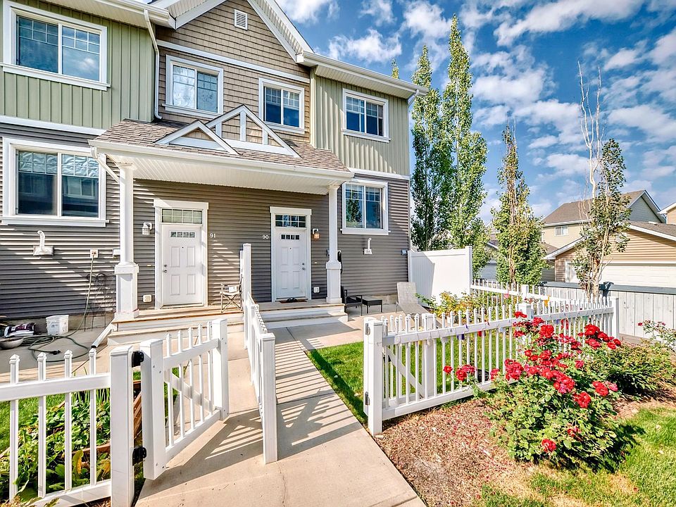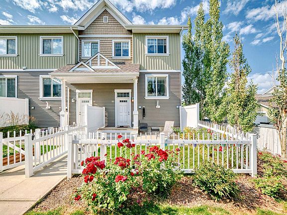 Welcome to this immaculate end-unit townhouse in the sought-after lake community of Summerside! Enjoy exclusive access to Lake Summerside, tennis courts, rinks, and more. This bright and airy 3-bedroom, 2.5-bath home features an open-concept main floor with stylish dark laminate flooring, quartz countertops, stainless steel appliances, a corner pantry, and a cozy electric fireplace. The spacious kitchen opens to a balcony perfect for entertaining. Upstairs offers a large primary bedroom with walk-in closet and ensuite, two additional bedrooms, a full bath, and upper laundry. Massive windows and an east-facing fenced yard flood the home with natural light. The unfinished basement provides excellent storage and access to the double attached garage. Walking distance to Michael Strembitsky School, parks, and just 15 minutes to the airport—this turnkey unit is perfect for first-time buyers or investors!