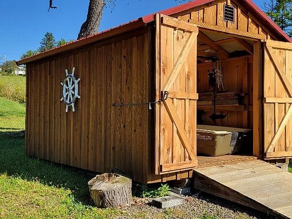 Nestled by the lakeside, this charming cabin offers a peaceful retreat with a private driveway leading to an Amish-built, fully furnished home. The one-bedroom cabin invites you to enjoy your morning coffee while relaxing in rocking chairs on the porch, overlooking the serene waters.