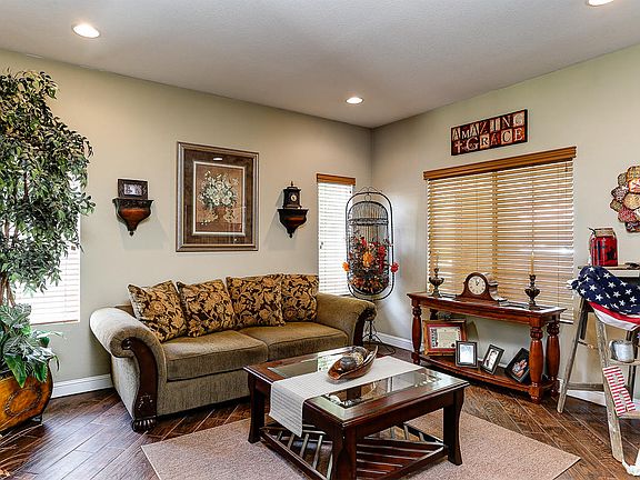 Charming West Palmdale Home 4 bedrooms 2 full baths located in a cul-de-sac. Upon entering the living room you immediately feel at home.The home features nicely decorated living room with dual fireplace,dining room, family room, ceramic tile floors and wooden blinds. Kitchen has granite counter tops, stainless steel appliances,recess lighting throughout and ceiling fans in all bedroom.The garage has plenty of cabinets used for storage. The backyard has block walls and covered patio. Great location close to Rancho Vista Golf Course and Marie Kerr Park