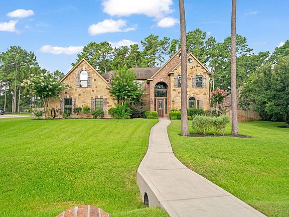 This custom Dunn & Stone gem has it all—space, style, and a backyard oasis! Nestled on a half-acre corner lot with a striking stone & brick exterior, this 4-bed, 3.5-bath home is move-in ready with fresh paint, hardwood floors, and abundant storage. A grand 2-story foyer leads to formal dining and living areas, while the stylish office makes working from home a breeze. The chef’s kitchen impresses with 42" cabinets, stainless appliances, a butler’s pantry, and breakfast nook opening to the cozy family room with limestone fireplace. The first-floor primary suite offers dual vanities, walk-in closet, and patio access. Upstairs are 3 bedrooms, 2 full baths, and 2 bonus rooms plus a game and media room for endless fun. Outdoors, enjoy a sparkling pool, patio, and lush landscaping. With a 3-car garage, low taxes, low HOA, top-rated schools, and a location minutes from The Woodlands shopping, dining, and parks—this home is the total package!