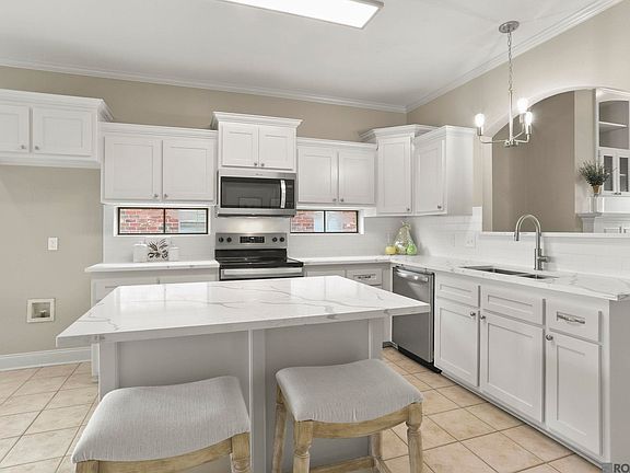 Charming 3 Bed, 2-Bath Home Situated on a Quiet Dead-End Street in Ascension Parish! Come fall in love with this beautifully updated home that features so many upgrades, a brand-new roof, new central heat & air unit (with all new ductwork), new energy-efficient windows, new stainless appliances + a freshly painted interior throughout with a neutral palette. As you step inside the living room, you’ll be greeted with a large picture window offering plenty natural lighting & views of the spacious, open patio, elegant crown molding & a cozy gas fireplace that is perfect for cooler nights. The kitchen is a chef’s dream, boasting sleek quartz countertops, ample cabinetry for excellent storage + a central island that adds both style & functionality. Adjacent to the kitchen, you’ll find the nice dining area that also has an abundance of natural light, as well as direct access to the large, covered patio, ideal for outdoor entertaining. The generous master suite provides a peaceful retreat, featuring an ensuite bath with a double vanity, quartz countertops, a relaxing soaking tub + a separate shower & a sizable walk-in closet. There’s also a built-in desk area off the garage that offers the perfect space for a home office/study. Owner/Agent. Don't miss out on this move-in-ready gem. Schedule your showing today!