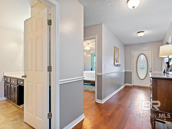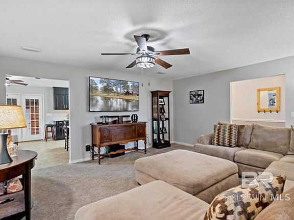 Unwind in this spacious, quaint farmhouse on TWO separate parcels totaling approximately 1.6 acre - overlooking a private, stocked pond on a quiet cul-de-sac. Ducks, geese, and natural wildlife create a private retreat just minutes from downtown Bay Minette and the Eastern Shore. This lovingly maintained home delivers room for everyone with a flowing layout and abundant natural light. Inside you'll find a comfortable living room, an extensive kitchen with a true breakfast bar, walk-in pantry (2022), and new microwave (2022), plus an oversized primary suite with walk-in closet. Upstairs offers a massive bonus room, huge bedroom, full bath, and ample storage, now enhanced with two high-efficiency mini-splits (2022 & 2025) for year-round comfort. Outdoor living is equally spectacular: a new backyard private fire-pit patio, an expansive back deck with projection screen where the back yard movie screen conveys with the property, a covered breezeway to the two-car garage, and the serene stocked pond complete with a zipline for unforgettable afternoons. Thoughtful updates abound: new carpet in living and upstairs (2022), new roof (2020), new paint and cabinet stain throughout, new ceiling fans, and a security system, all reflecting exceptional care and attention to detail. Whether you're seeking peaceful mornings by the pond, lively evenings gathered around the fire pit, or a spacious home base for entertaining and everyday life, this property delivers the perfect balance of privacy, comfort, and modern upgrades. Two lots. 1.6 acres. Fresh improvements. Endless possibilities! Schedule your private showing today! Buyer to verify all information during due diligence.