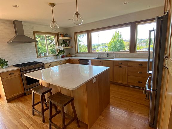 Beautifully updated 4-bedroom + office, 2.5-bathroom mid-century home on a quiet street, walking distance to the heart of West Seattle (Trader Joe's/Whole Goods/QFC, restaurants, year-round farmer's market, and rapid-ride C to downtown). Perched above the street, enjoy a sunny deck with mountain views. Gaze at Mount Rainier from the updated chef's kitchen. Enjoy a light-filled open concept layout with hardwood floors, fireplace, and territorial views on the main level, including a primary bedroom with en suite bath. Lower level includes a full mudroom with laundry, as well as a spacious family room. Fully fenced backyard and garage including workshop and parking for one vehicle (ample street parking out front). The house can be rented furnished or partially furnished. Available August 1. HOME FEATURES: Peaceful and convenient West Seattle location Modern kitchen and bathrooms Hardwood floors Fully fenced backyard Garage Mudroom with laundry Tons of storage COMMUNITY FEATURES: 5 Minutes to California Ave for bars, restaurants, and shopping 20 Minutes from Downtown Seattle 20 Minutes from Sea-Tac Airport Walk to local parks and schools RENTAL BASICS: Lease Term: 1 Year Minimum Security deposit: Equal to one month's rent Pets: Cat and small dog are considered on a case-by-case basis with an additional $500 deposit per approved pet and $50 per month. Must be approved. Utilities: Tenant is responsible for all utilities except landscaping, which is included in rent and covered by the owner $50 Non-refundable Application Fee per applicant 18 or older IMPORTANT THINGS YOU SHOULD KNOW: No smoking or vaping of any kind (if you smoke, please don't apply) Renters insurance must be purchased within 14 days of lease start date Application processing time is 3-4 business days. Please review application criteria before applying: 3x income-to-rent ratio (maximum of two applicants' incomes), a 740+ credit score (lower credit score may be considered if all other criteria are met) and: no eviction history, no accounts in collections.