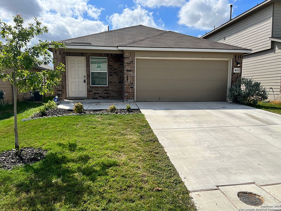 Owner financing available. Features include a bright and open floor plan, perfect for gatherings and entertaining guests. Welcome home to a modern single-story residence built in 2020, nestled in the peaceful community of Cobalt Canyon in Saint Hedwig. Step into an open-concept living space where the living room flows easily into the kitchen and dining area-ideal for both everyday living and entertaining. The home showcases luxury vinyl flooring in high-traffic "wet" zones for durability, while bedrooms are carpeted for comfort. The kitchen is a highlight: sleek granite countertops, stainless appliances, and a well-designed workspace make it a true functional centerpiece. The primary bedroom includes a walk-in closet and its own full bath with a vanity setup. This home is built with four-sided brick masonry and sits on a slab foundation. The windows are low-emissivity (Low E), and LED lighting is used throughout, which helps keep energy costs down and contributes to a more comfortable, climate-controlled interior. Outside, you'll find a two-car garage and the lot size gives you ample outdoor room without too much upkeep-ideal for relaxation, a small garden, or a play area. Locationwise, you're just minutes from major corridors (IH-10 & 1604 or IH-35) and about 7 minutes from Randolph AFB or Ft. Sam-easy commuting in either direction whether you're heading into San Antonio or out toward Austin. A nearly new home (built in 2020) that combines modern upgrade features with practical layout. Smart floor-plan: one level, no stairs, which adds accessibility and ease. Energy-efficient touches and durable finishes throughout. Country-like setting with the convenience of suburban access. Ideal for a range of buyers: first-time homeowner, military/affiliates needing proximity, or anyone seeking a manageable yard and strong value.