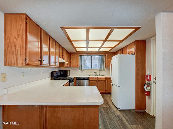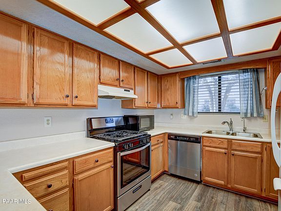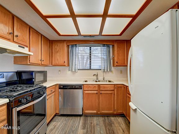 This wonderful move-in ready home located in Prescott Valley's desirable Unit 19, presents a fantastic opportunity with its 3 bedrooms, 2 bathrooms, and absence of HOA fees. Situated close to schools, shopping, entertainment district, restaurants, medical facilities, hospital and PV city offices. Inside featuring durable plank flooring graces most of the house, along with upgraded amenities such as the oven/range, bathroom sinks, faucets, and primary bathroom cabinet. Additional features include an attic fan system, security door, and a kitchen sink with a Reverse Osmosis system. A wood-burning stove in the living room adds warmth and charm. Dog door in AZ room. Click ''more'' for additional information.