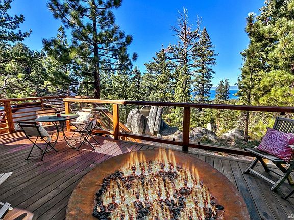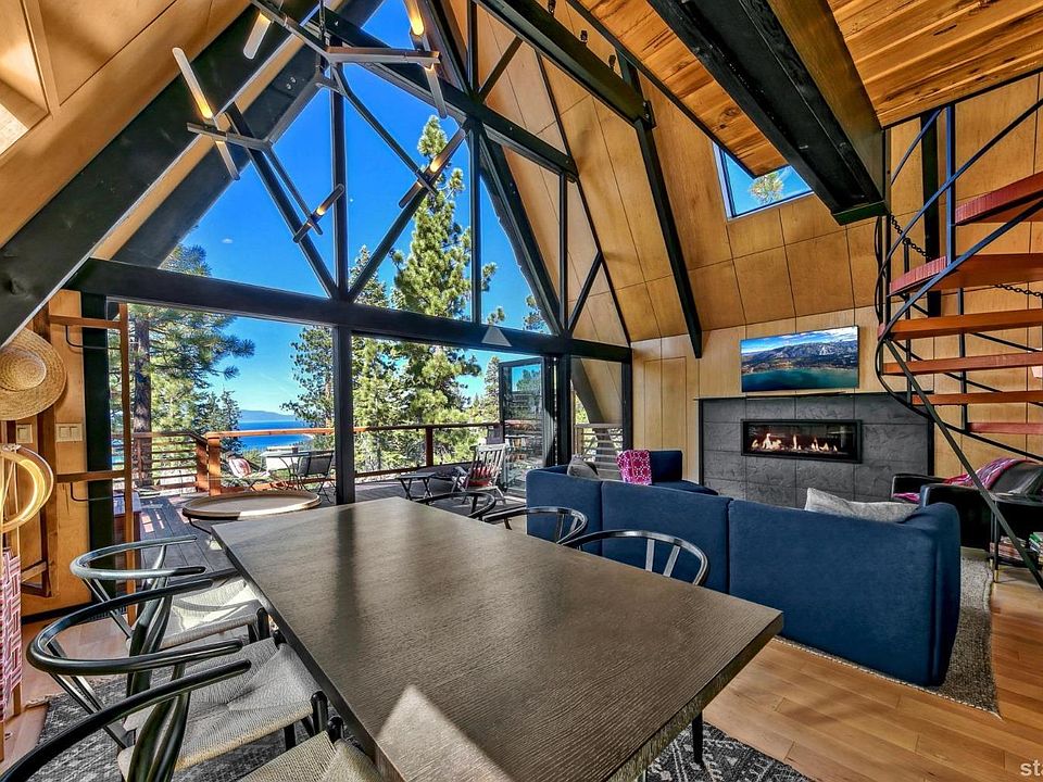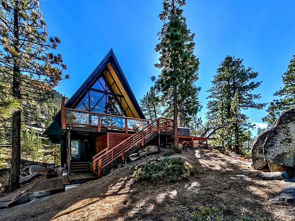 Rare, one-of-a-kind offering: Modern architectural A-Frame home with mesmerizing lake and ski resort views. Relax and unwind at this stunning, private lot property nestled high among tall pines and beautiful boulders, steps from Heavenly mountain. Fine design details are throughout this expanded and completely transformed 3 bedroom, 3.5 bath home, including a top-of-the-line kitchen, loft and study, and full-floor lower lounge area with wine and ski storage. Gatherings will be highlighted by the spacious and inviting open living/dining room with striking fireplace and cathedral-height, fully-opening window wall facing the lake, and its bright and tranquil bedrooms for the pinnacle of comfort. While taking in magical water views and sunsets from its expansive outdoor deck, featuring a hot tub area and designer fire pit, fond memories are sure to be made. Next to gorgeous slopes, hiking and mountain biking trails - it's a dream for any outdoor enthusiast. The ultimate mountain retreat!
