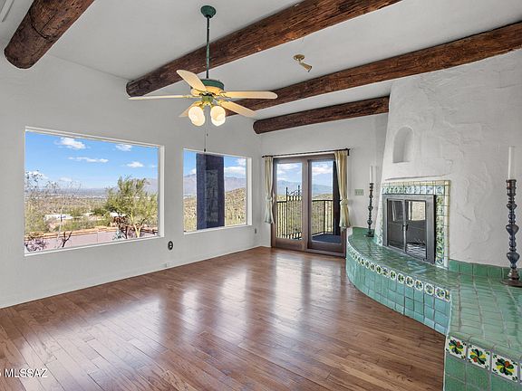 Step into a peice of history! The original home was built in the 1920s, and the rest was added in 1968. In Gates Pass, you have 360-degree views, including all of Tucson's surrounding mountain ranges, Saguaro-studded grounds, city lights, and downtown views. You can have this incredibly unique home on OVER 3 ACRES! Original refinished wood floors & Saltillo tile, wood post beams from antique telephone poles, and wrought iron fence details made from the window bars of the original Buffalo Exchange building! Enjoy your well-maintained pool, with privacy and nature all around. Upon arrival, you're greeted by a private solar-operated gate for access. You are welcomed in with a roundabout, extended carport, and large courtyard with a custom fountain, TONS of extra space for entertaining!
