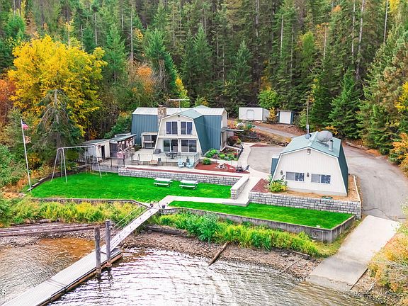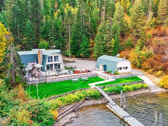 An irreplaceable Coeur d'Alene Lake estate—never before offered on the market. This remarkable 3.44-acre property offers 307 feet of deep, crystal-clear frontage with two private docks, usable grounds, and the perfect blend of privacy accessibility to downtown Coeur d'Alene. The spacious 5-bedroom, 3-bath multi-level home is built for gatherings, comfortably sleeping 16+ with extra cots. Inside, enjoy cozy evenings around the wood stove or propane stove, while expansive windows capture the lake from nearly every room. Step out onto the balcony for panoramic views of Coeur d'Alene Lake, the perfect setting for coffee at sunrise or cocktails at sunset. The upstairs master suite is a true centerpiece, featuring a huge jetted soaking tub unlike anything you've seen. Outdoors, the lifestyle continues with a hot tub, private sauna, and a massive concrete patio complete with both a built-in gas grill and a classic charcoal grill. Gather around the firepit under the stars, or let kids and guests enjoy the expansive grassy play area, perfect for games, events, and lakeside fun. Amenities extend beyond recreation: a 23x32 detached garage/shop, wood shed, two additional storage sheds, and a detached root cellar provide endless utility. Adding to the natural beauty, a seasonal creek winds through the property, creating a serene backdrop year-round. All furnishings are negotiable, making this a turnkey opportunity. With unmatched frontage, rare amenities, and limitless potential, this is more than a property it's a legacy on Coeur d'Alene Lake.