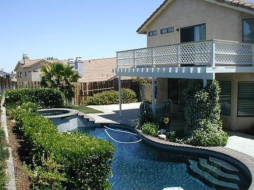 Home has 3 bedrooms plus den/office or additional 4th bedroom downstairs in desired Rancho Vista neighborhood in west Palmdale. Beautiful swimming pool with attached spa. Remodel kitchen with tile counters and black appliances. Swamp cooler (low electric bills). Water, gardner and pool service paid.