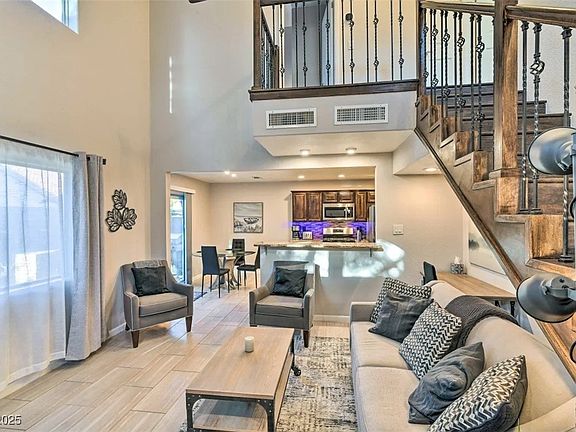 NICELY UPDATED HOME FOR STARTING FAMILIES!! Centrally located, close to restaurants, groceries & shopping. Only 20 mins to the Strip, 15 mins to Old Downtown. If you’re into nature Mt Charleston is only 30 mins away, it has perfect weather in the summer. Close to the fwy for easy access. The home has been fully renovated, the floating stair conversion opened up more living space for more useable sqft., new elegant stair railings, new tiles and engineered wood floors on 2nd floor, all ceramic tiles on main floor, new modernized bathrooms, light-mirror in masterbath, neutral color walls. Very elegant and nicely renovated, great for entertaining.