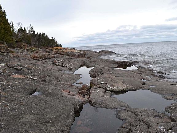 Peace and Solitude at a maximum in this simple and solid Lake Superior cottage. Located on Lutsen's Cascade Beach Road, this cottage is very deep off the Cascade Beach Road, and even deeper off Highway 61. So all those folks that don't like to hear the highway, this is the place for you! No sounds but the waves rolling up the sprawling ledgerock shoreline. There's a few natural "ponds" perfect for splashing your toes on warm summer days basking in the sun on the ledgerock shoreline. When there's a good Nor'easter you'll see the waves crashing in to a little cove to the west of the cottage, and left behind in its path a beach for agate hunting! A very unique and incredible piece of land and lakeshore, the long tree lined driveway opens up to an expansive view of Lake Superior, with the cottage centered in the middle of the nearly 200 ft of shoreline, with 3.4 acres of land! The cottage is all that you need, two bedrooms, a nice large bathroom, living room with fireplace and a walk through galley style kitchen. Again, expansive views of the Lake are striking from the kitchen and the living room. Enjoy your morning muffin and coffee at the dining table while watching the many moods of the Big Lake! While the footprint of the cottage is simple, just imagine an addition to the cottage with a master en suite, the potential is unlimited with such a gorgeous parcel of land and lakeshore. Or just enjoy the simplicity of the space as it is, as others have done since the late 50's. The home has been well maintained, new roof, new furnace coming soon, and a cozy fireplace...it's a very warm and inviting space ready for you to enjoy. One of the best spots on Lutsen's Lake Superior with Peace and Solitude!