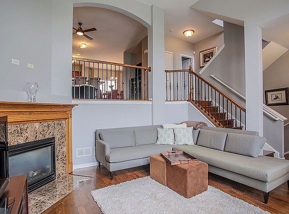 Loaded with upgrades! Tastefully decorated! Newer hardwood flooring! Urban style living w/modern flair! Upgraded wrought iron spindled stairs. High ceiling in living area w/granite hearth fireplace. Gourmet kitchen w/42" cherry cabinetry, stainless appliances, island, pantry & breakfast area. Deluxe master suite w/walk in closet, luxury bath w/dual vanities, separate tub & shower. 2nd floor laundry. Upgraded light fixtures, finished basement. Gated courtyard; extra wide 2-car garage. $Commuters'' delight, close to everything. Move in ready! Naperville school district. This is where you want to live! Welcome Home! $1000 credit at closing to buyers for signed contract by September 30th, 2015.